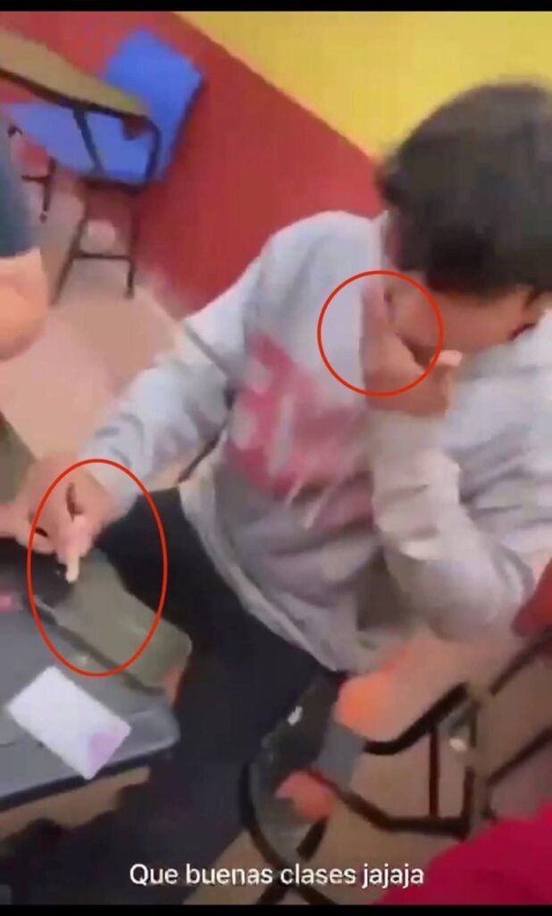 📸 Las imágenes muestran a estudiantes inhalando un presunto polvo blanco dentro del plantel, hecho que se suma al reciente caso de la Secundaria Técnica 1, donde también se evidenció a menores consumiendo dentro del salón.